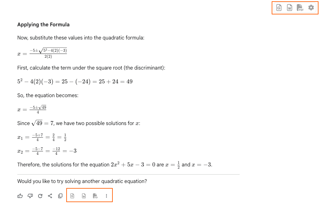 Download any single Gemini response as a Google Docs, Word or PDF file with one click. -